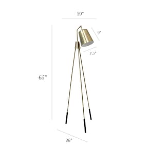 Luminária de chão de latão antiga de três pernas Elegant Designs LF1025-ABS com abajur variável -