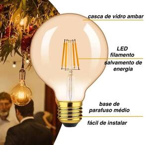 Lâmpada Filamento LED G95 4W 2200K Bivolt Âmbar - kit: 2 unidades