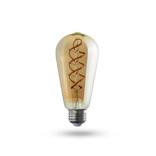 A Lâmpada de Filamento LED modelo ST64 é indicada para a decoração e iluminação de um ambiente com o objetivo de criar um ambiente de luz suave e um toque rústico ou vintage. Quando acesa, a lâmpada led espiral ST64 traz ao ambiente uma luz alaranjada, aconchegante, produzindo um desenho em espiral.