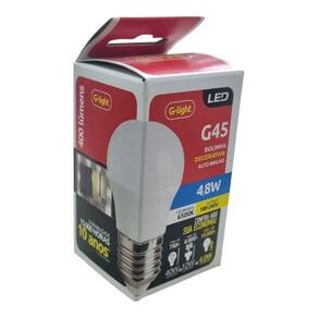 A Lâmpada G45 Leitoso 4,8W 6500K E27 Bolinha Decorativa é uma lâmpada conhecida por sua iluminação delicada e elegante, ideal para uso decorativo em pendentes, lustres e arandelas, e oferece eficiência energética com baixo consumo de energia.