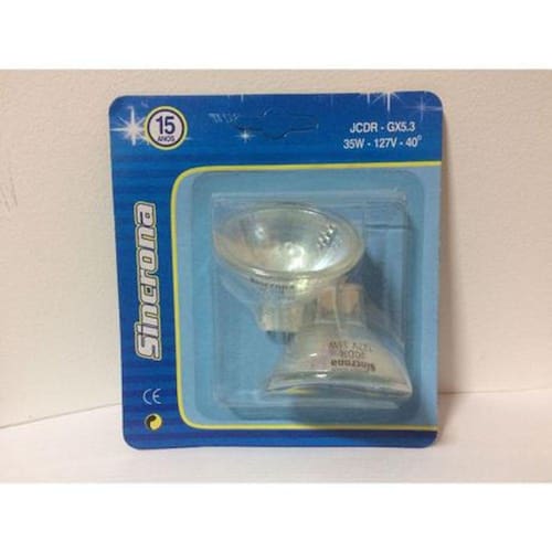 LAMPADA HALOGENA DICROICA POTENCIA: 35W TENSÃO: 127V TEMPERATURA DA COR: 3000K BASE: GU 5.3 VIDA UTIL: 500HRS ANGULO DE ABERTURA: 10 GRAUS ACABAMENTO: CLARA DIMENSÕES: 35MM DE DIAMETRO X 35MM DE ALTURA.