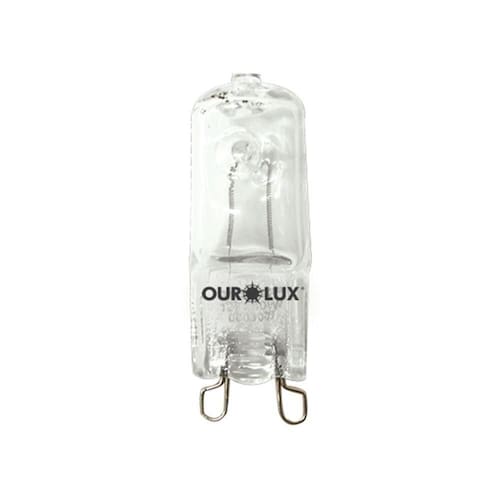 Lâmpada Halógena Ouropin G9 40w 127v Clara - 01322 - Ourolux Lamp.halogena Ouropin G9 40w 127v Clara 01322 Lâmpada Halógena Ouropin G9 40W 127V Clara - 01322 - OUROLUX Descrição: Excelente reprodução de cores (IRC = 100). Ideais p/ uso em luminárias de mesa, compactas, balizadores, iluminação decorativa em ambientes comerciais e residenciais. Podem ser dimmerizadas. Funciona em qualquer posição. Necessita de transformador para ligar à rede elétrica.
