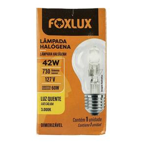 Características Principais: Marca: Foxlux Potência: 42W Tensão: 127V Base: E27 Luminosidade: 730 Lumens Temperatura da Luz: 3000K (Amarelo) EAN: 37898586131096
