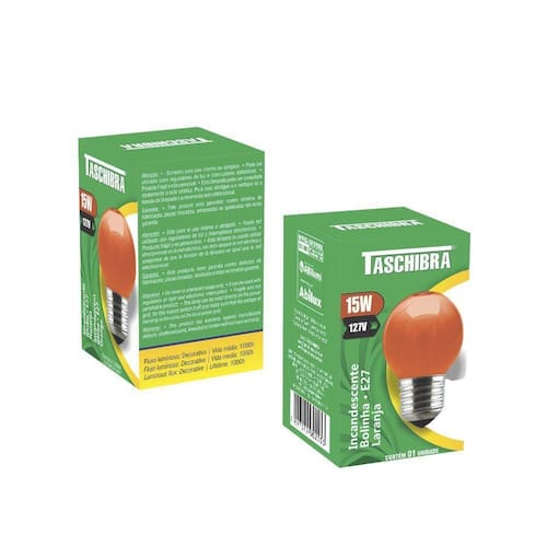Lâmpada Incandescente Taschibra Bolinha 15W 110V Laranja