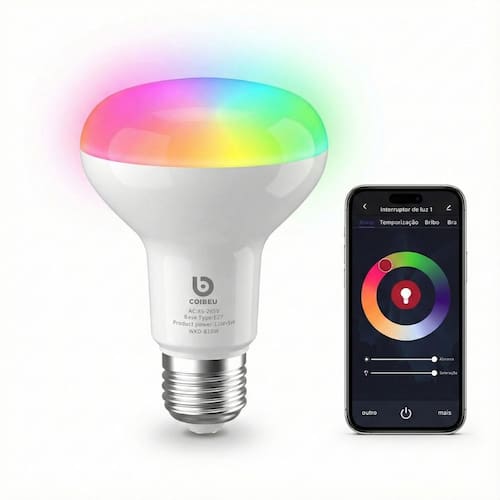 Instale a lâmpada em um soquete E27. Baixe o Coibeu Smart App, Smart Life ou Tuya Smart (Android ou iOS). Conecte seu smartphone a uma rede Wi-Fi 2.4 GHz. Para entrar em modo de pareamento, ligue e desligue a lâmpada 3 vezes rapidamente até que ela comece a piscar. Siga as instruções do aplicativo para concluir a conexão. (Opcional) Vincule sua conta à Amazon Alexa ou Google Home para controle por voz.