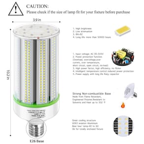 Super brilhante lâmpadas de espiga de milho LED de 100 w com 14000lm, lâmpada de iodetos metálicos de substituição de LED de 400 watts, HID, HPS, lâmpada de vapor de mercúrio, lâmpada incandescente de 1000 W ou lâmpada CFL de base E39. Instale em Sem zumbido, sem cintilação, brilho de 360 sem canto morto. Você está cansado de trocar constantemente balastros e lâmpadas não precisa de lastro, basta conectá los diretamente. Economia de energia e longa vida útil O consumo de energia é 1, 10 da lâmpada incandescente, 2, 3 da lâmpada economizadora de energia sob o mesmo brilho, com uma vida útil de 50.000 horas, a lâmpada de milho durará mais de 23 anos com base em 7 horas a cada dia Não mais aborrecido por regular Marca: Não Informado