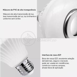 Lâmpada Led 12W E27 Rgb Colorida Com Caixa De Som Bluetooth
