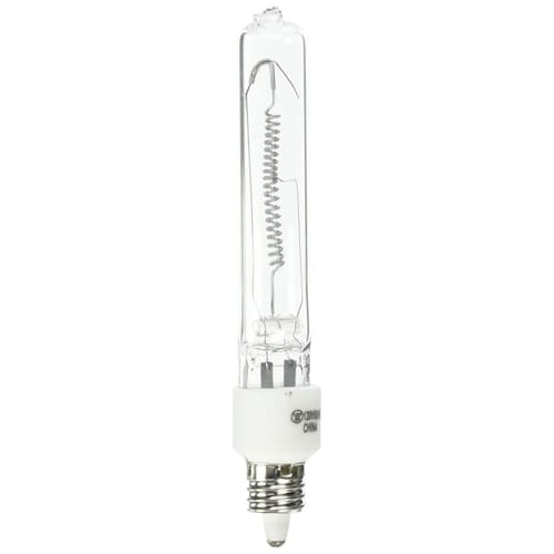 Watts 500, Volts 120 Cor, Temperatura Kelvin Transparente, 3100K Lumens brilho 9000, horas de vida útil nominal 2000 Base Mini candelabro E11 Marca: Não Informado