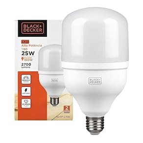 Lâmpada led 50w bulbo biv 6500k branca - black+decker apresentando a lâmpada led bulbo de alta potência da black decker - a escolha perfeita para iluminar seu espaço com eficiência e estilo com sua tecnologia de ponta, essa lâmpada oferece uma iluminação poderosa e brilhante, garantindo que seu ambiente esteja sempre bem iluminado. Informações técnicas: potência: 50w tensão: 100-240v frequência: 50/60 hz corrente: 155/95 ma fator de potência: = 0,92 conector: e27 temperatura da cor: 6500 k fluxo luminoso : 2400 lm eficiência luminosa: 80 lm/w vida útil: 25. 000 h ângulo de facho: 200º