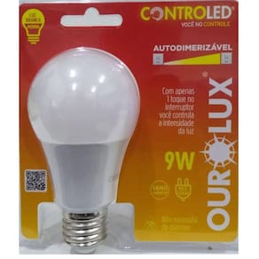 Ourolux possui mais de 25 anos de história no mercado de iluminação no Brasil. É uma das pioneiras no desenvolvimento de produtos altamente eficientes e com qualidade internacional. Possui sede na em São Paulo, um dos maiores polos de iluminação do Brasil.Todos os produtos da Ourolux estão dentro dos padrões ABNT além de serem todos revisados e certificados pelo INMETRO. Ourolux Autodimerizável . Não necessita de DIMMER Informações Técnicas Tensão - Bivolt Base - E27 Potência - 9W Fluxo Luminoso - 810lm Vida Útil - 25.000h Cor - 2700k - luz branca Morna. Equivalente com lâmpadas dos tipos: 60W/ 810lm 16W/ 810lm
