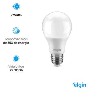 Características Técnicas: Potência: 9 W. Temperatura de cor: 6.500 K (branco frio). Voltagem: Bivolt (110/220 V) — modelo preparado para instalações comuns em Brasil. Formato: A60 (bulbo), padrão doméstico. Marca: Elgin. Indicação de uso: Ambientes internos como salas, cozinhas, corredores, escritórios ou espaços comerciais, onde se busca iluminação clara, eficiente e com menor consumo. Benefícios: • Consumo até ~ 10× menor que lâmpada tradicional incandescente de 60 W (aproximadamente) • Vida útil estendida (LED) • Instalação simples • Bivolt evita necessidade de modelo específico para cada voltagem
