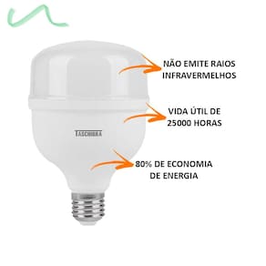 Olá, seja bem-vindo a Casa Meta Shop!Temos o objetivo de lhe ofertar uma grande variedade de produtos para Casa e Decoração. Sempre procuramos garantir qualidade e um ótimo atendimento no pré e pós venda gerando a melhor experiência para você. Assim estabelecendo uma relação de confiança! Nosso processo de embalagem garante uma entrega rápida e segura, que só a Casa Meta garante.LAMPADA HIGH LED TKL 225 / 40W 6500K E27 TASCHIBRASegura e econômica, eficaz e simples de instalar, LED tem vida útil longa, e resultará em dinheiro economizado.Com alta qualidade, economia de energia, eficiência elevada, longa vida útil; as lâmpadas LED são extremamente duráveis.Excelentes para cenas de paisagem, iluminação local, iluminação arquitetural, iluminação arte até ao uso normal diário em casa ou no trabalho.Características:- Materiais: Policarbonato e alumínio.- Potência: 40W.- Tensão: 100-240V.- Temperatura de cor: 6500K.- Base (soquete): E-27.- Fluxo luminoso: 3600lm.- Eficiência luminosa: 90lm/W.- Frequência: 50/60Hz.- Fator de potência: =0,92.- IRC: >80.- Ângulo de abertura: 220º.- Dimerizável: Não.- Índice de proteção: IP20.- Vida útil: 25.000 horas.Qualquer dúvida estamos a disposição!