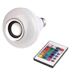 Lâmpada Led Caixa De Som Bluetooth Musical Com Controle Rgb Nova lâmpada bulbo 12w de potência que toca música e ainda tem controle remoto com 24 funções. Ela pode reproduzir músicas do seu celular, ou de qualquer outro dispositivo, que tenha bluetooth, com alta qualidade de som. Possui luz com ótima intensidade, além de 4 modos para operar as luzes. Características: - Cor: Rgb - Lâmpada bluetooth com controle remoto - Bocal: E27 é o bocal comum que temos em casa. - Lâmpada possui a capacidade de receber áudio via bluetooth. Assim você consegue reproduzir suas músicas e controlar as luzes por um controle remoto que já vai incluso. - Voltagem: AC 100-240V / 50-60 Hz - Potência: 12w - Potência do led: 7w - Potência do som: 3w - Frequência de resposta: 135Hz para 15KHz - Wireless: 3.0 - Distância de funcionamento: 10mNúmero de Homologação ANATEL: 044812214692 Marca: Aquilae