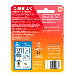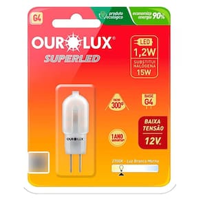 A Superled 1,2W substitui a lâmpada halógena 15W ou fluorescente de 3W. Com base G4 e facho 300o e baixa tensão 12V. Apropriada para utilização em lustres, arandelas decorativas e luminárias de tamanhos pequenos. Com economia de energia de até 90%, é ideal para aplicações em ambientes comerciais e residenciais. Cód. 20146 Voltagem: 127V Potência: 1,2W Base: G4 Eficiência luminosa: 75W Vida útil: 15.000h NÃO DIMERIZÁVEL