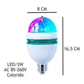 Lâmpada led globo colorida rotativa giratória festa boate lâmpada de led colorido rotativa- excelente para balada, festa, buffets, discoteca, salão de festas, ktv, bar, palco, clube, etc. Também para você que tem um comércio e quer chamar a atenção dos seus clientes. - fácil utilização, pois possui soquete padrão e27 padrão de lampadas, você pode ligar em qualquer tomada da sua casa convencionais, com isso pode usar a mesma em qualquer ambiente que desejar, salas, garagens, quartos. Informações técnicas-base de fabricação: e27 soquete de lâmpada comum -tipo: lâmpadas-cor da luz: rgb-potência w : 3w-tensão v : 110v / 220v bivolt automático-vida útil estimada h : mais de 10. 000 horas-fonte de luz: led de alta performance. Itens inclusos1 - lâmpada de led colorido giratória1 - bocal para ligar na tomada