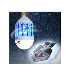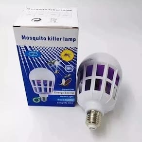 Lâmpada de led 2 em 1: ilumina com led branco ou uv para atrair e eliminar pequenos insetos voadores (ex: pernilongos), quando entram na câmara da lâmpada, são eliminados com pequeno choque elétrico.