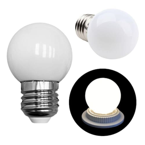 Produto: Lâmpada LED Bolinha Decorativa Potência: 1W Tensão: 127V ou 220V (conforme variável ativa) Fluxo Luminoso: 55 lúmens Ângulo de Abertura: 320 IRC:>80% Cor da Luz: Branco Frio Material: Plástico resistente Rosca: E27