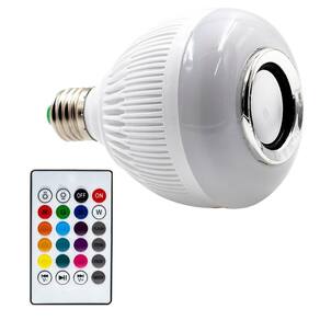 Lâmpada Led Musical Bluetooth Com Controle Remoto Lâmpada musical caixa de som com iluminação led rgb e controle remoto wj-l2. Você pode controlar as suas músicas pelo seu smartphone ou tablet via bluetooth. Compatível com android e ios. Funções mp3 e rgb, acompanha um controle para a mudança de cores. 12 cores diferentes para a sua diversão e da sua família. Faça de qualquer sala um verdadeiro salão de festas. Informações técnicas: - bivolt - 50hz-60hz - led: 6w - potência máxima: 12w - potência da caixa de som: 3w - frequência de resposta: 135hz-15khz - versão bluetooth 3.0 - alcance de rádio: 10 metros - cor do led: amarelo; verde; rosa; azul; branca - modo rgb Itens inclusos: 01 lâmpada musical 01 controle remoto Marca: Decorlaser Ean: 7891765707104