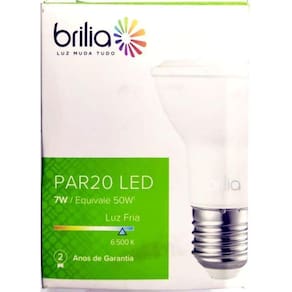 - modelo par20 led - marca brilia - potência: 7w - base: e27 - tensão: 100-240v bivolt - temperatura de cor: branco quente 2700k - fluxo luminoso: 525lm - intensidade luminosa: 1200cd - ângulo de abertura: 38 - vida útil: 25.000 horas - frequência: 50/60hz - irc: 80 - corrente: 55ma 127v / 40ma 220v - fator de potência: 0,7 - índice de proteção: ip20 - não permite dimerização - temp. De operação: -20c a 40c - dimensões: 63,5mm d x 83mm a - peso: 90g - equivalência: substitui a de 50w da comum - código: 307575