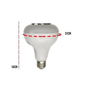 Lampada Led Musical Residencial. Conta com uma caixa de som de 3RMS, podendo ser controlada por seu controle, que é incluso, ou direto no seu celular no modo usb. A lampada possui entrada usb para pendrives.
