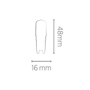 Especificações Gerais do Produto: Dimensões AxLxP (mm): 48x16 Garantia: 2 anos junto ao fabricante Fator de Potência: Maior que 0,7 Fluxo Luminoso: 180 lúmens IRC (Índice de Reprodução de Cor): Maior que ou Igual 80 Potência: 2W Soquete: G9 Vida Útil: 15.000 horas Modelo/Tecnologia: LED Tipo: Bipino Dimerizável: Não Eficiência Luminosa: 90 lm/W Grau de Proteção: IP 40 Ângulo de Abertura: 320°