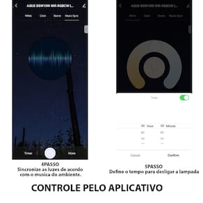 Sincronize a lâmpada com comandos de voz ou o som ambiente para uma experiência ainda mais personalizada e conveniente.