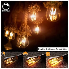 BULBO EDISON DIMMABLE Atualize o driver regulável com a lâmpada totalmente regulável disponível, que é sem cintilação, silenciosa e possui recursos de escurecimento suave de 0 100 com todos os dimmers. A lâmpada led edison totalmente regulável permitirá que você crie o equilíbrio perfeito de luz vintage ESTILO VINTAGE ANTIGO Preserve o estilo retrô das lâmpadas tradicionais de Edison, esta lâmpada certamente adicionará personalidade a qualquer ambiente Parece com as lâmpadas edison convencionais, mas com a vantagem do LED baixo calor, economia de energia, longa vida útil LUZ QUENTE AMBER A lâmpada vintage emite uma bela iluminação ambiente quente e desda em vez de uma iluminação esmagadoramente brilhante, faz com que seu quarto pareça mais agradável, aconchegante e mais convidativo ECONOMIZE SEU DINHEIRO As lâmpadas de filamento de LED substituem a lâmpada incandescente de 40W por LED de 4W, economizando mais de 90 na conta de luz de eletricidade. Feito pelo exclusivo FILAMENTO DE OURO resistente oferece 20.000 horas de vida útil, você pode usar por 18 anos com base no uso 3 horas por dia Marca: Não Informado