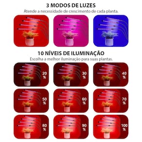 Melhore e aumente o empenho do seu cultivo interno (Indoor) com essa Lâmpada de Múltiplas funções, com 3 painéis de Luz Ultravioleta que possuem braços (hastes) flexíveis. As Lâmpadas possuem Tecnologia LED (8573) que garante eficiência energética e longa durabilidade. Possui suporte para montagem em mesa e cabo USB. Possui 3 Tons de Luz, Azul, Vermelho e Ultravioleta.