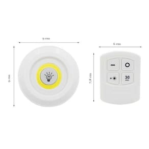 Especificação: Led de 3we Brilho de 150 lumens Fixação com 3mtape stick on Luminária usa 3 pilhas aaa Controle remoto usa 2 pilhas aaa Aciona por toque na luminária ou pelo controle remoto Distância de acionamento pelo controle de até 4 metros
