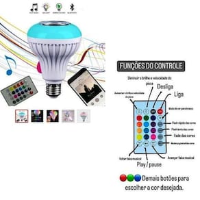 Lampada Musical Caixa Som Bluetooth Led Rgb Com Controle, Lâmpada RGB de LED colorido com Bluetooth Wireless 12W Bivolt com controle - Lâmpada E27 Branca