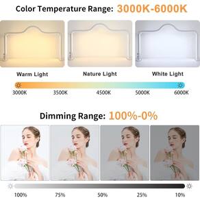 - Escurecimento contínuo: a luz LED para cílios tem 2 controles rotativos em um lado para ajustar o brilho e a temperatura da cor, o brilho pode ser ajustado de 0% a 100%, a temperatura da cor pode ser definida na faixa de 3000-6000K. Se você precisa de iluminação brilhante ou iluminação ambiente suave, esta luminária de mesa foi projetada para atender perfeitamente às suas necessidades específicas.