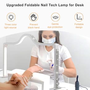 - Especialmente projetada para iluminação de manicure: o design convexo médio oferece um grande espaço entre a lâmpada e a mesa, você pode descansar os braços do seu cliente para deixá-los confortáveis e ainda ter espaço suficiente para trabalhar confortavelmente. Ao mesmo tempo, pode ser dobrado e transportado, o que é muito adequado para serviço de unhas de porta a porta.