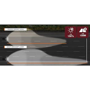 As lâmpadas fornecem um feixe de até 150 metros de comprimento e até 20% de luz mais branca em comparação com o requisito legal mínimo.