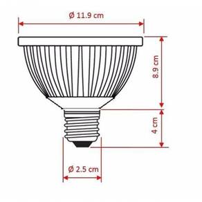 Lâmpada PAR38 com 12 LEDs. Baixo consumo de energia elétrica e baixa temperatura. Vida útil de 50.000h