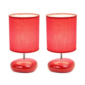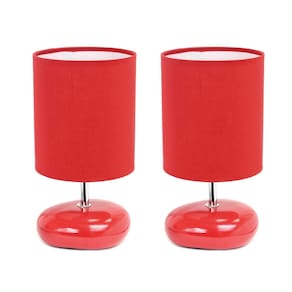 Simple Designs LT2005-RED-2PK Stonies Conjunto de 2 lâmpadas de mesa de cabeceira de mesa com aparência de pedra pequena, vermelho
