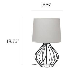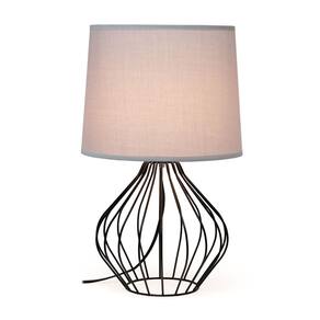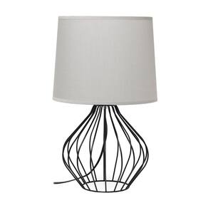 Simple Designs LT2086-GOB Candeeiro de mesa de cabeceira oco geométrico com fio, base preta com sombra cinza