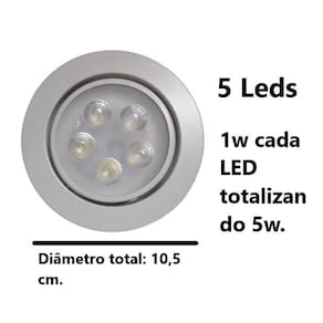 alta eficiência, alto brilho, ampla voltagem. Favorável ao meio ambiente, não contém mercúrio,cinza, sem interferência eletromagnética. Características: quantidade de leds:5 x 1w. Voltagem: ac85-265v bivolt . Luminosidade: 560 lumens. Angulo de abertura: 45 graus. Tempo de uso aproximado: 50. 000 horas. Peso: 110 gramas. Altura: 3,7 cm. Diâmetro total: 10,5cm. Diâmetro do furo: 7,5 cm. Feixe de luz direcionável. Cor: 6500k branco frio. Já vai com reator instalado, somente necessário fazer a ligação dos fios na sua instalação. Modelo com base redonda. Compra garantida: