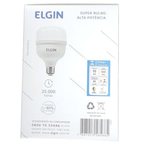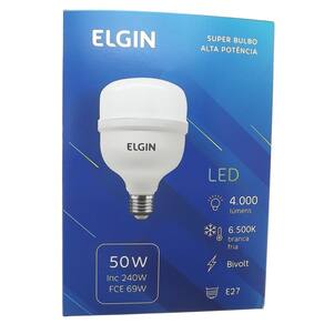 As lâmpadas Super Bulbo LED de Alta Pôtencia da Elgin são próprias para a substituição das lâmpadas incandescentes ou fluorescentes compactas. Com baixo consumo de energia, economiza até 85% de energia, longa vida útil. Características: Equivale a uma lâmpada incandescente comum de 240W e fluorescente 69w Produz luz brilhante e suave, próprios para iluminação casa, escritório e exposição Não contém mercúrio e Não emite infravermelhos Não emite ultravioleta Fator de potência: FP0,92 IRC: 80 R90 Temperatura: 6.500k branca Fria Fluxo Luminoso Lm : 4000 Frequência: 50/60Hz Eficiência luminosa: 80 lm/W Ângulo de Abertura: 240° Corrente 127V/220V : 428mA/248mA Não permite dimerização Certificada pelo INMETRO Altura: 19cm, Diâmetro: 14cm Vida útil: 25.000h Tensão: 100-240v Ean: 7897013585685