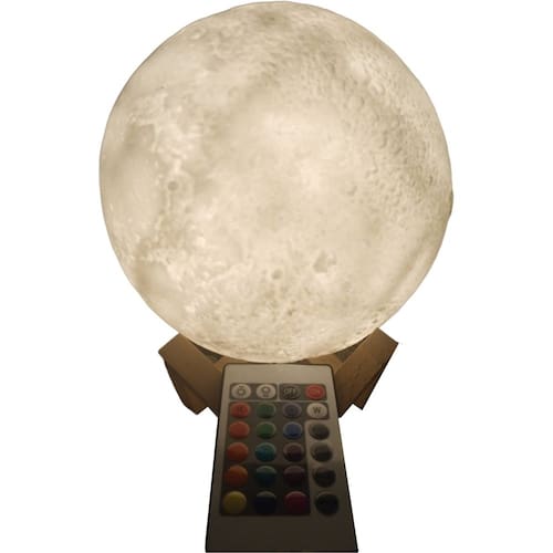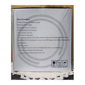 DescriçãoDEIXE DE CARREGAR PELO MENOS 8 HORAS ANTES DE OCUPAR O PRODUTO OJO ES RECARREGABLE. Lâmpada em forma de Super Luna 3D de 18 cm x 18 cm. Cor da iluminação: 3 CCT/7 RGB 16 cores. Porta de carregamento USB/DC 2.5T. Base de madeira.. Luz LED Cálida e Potente (ilumina Bastante) 120 lúmenes. Tempo de carregamento: 2 a 4 horas. Capacidade da bateria: 3.7v 500 mAh. Material: Fibra de vidro. Entrada de carga DC 5V/1A. Brilho ajustável com seu controle remoto. Duração da luz: 6 a 8 horas. Fonte de alimentação: USB DC 5 V. Diâmetro 18 cm. Biodegradável Conteúdo do pacote: 1 x Lampara Super Luna 18 cm x 18 cm Grande 1 x Base plegable de madera1 x Cabo USB 1 x Controle Remoto 16 cores incluídas em La Lampara, Para cambiar los colores ocupe control remoto.1 x Manual