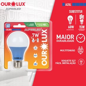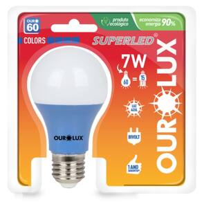 Lâmpada Superled Ouro 60 Colors 7 Watts Azul Bivolt - 05455 - OUROLUX