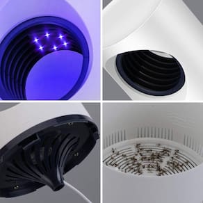 [Eliminação de insetos] O Bug zapper usa LED ultravioleta que atrai todos os insetos voadores traquinas para o zapper da mosca. Os mosquitos foram sugados para dentro da máquina e desidratados pelo ar e morreram.