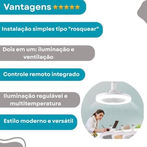 Luminária de teto com ventilador led e27 30w, para iluminação econômica e conforto Descrição do anúncio: O ventilador de teto com led e controle remoto branco 37w é uma combinação perfeita de funcionalidade e elegância para o seu ambiente. Construído em abs durável, possui um design compacto de 23cm x 23cm, adaptando-se perfeitamente a qualquer ambiente. Compatível com voltagens de 110v e 220v, este ventilador de teto com perfil baixo se encaixa perfeitamente em qualquer espaço, da cozinha à sala de jantar. Equipado com um motor de cobre embutido, garante uma ventilação silenciosa e eficaz. A iluminação é personalizável, com opções de luz quente ou luz natural, controláveis via controle remoto ou de parede. Aprimore seu espaço com nosso ventilador de teto com led e controle remoto branco. Conteúdo da embalagem: 1 luminária led ajustável ventilador de teto 1 controle remoto com bateria 1 manual de instruções Caraterísticas: Pontência: 30 w ventilador: 4w voltagem: 110/220v Níveis de luz: 3 tipos luz branca fria, luz quente, luz natural Dimmável: sim Tipo de base: e27 Material do corpo: abs fácil instalação Multifuncional: design 2 em 1, não é apenas uma luz led mas também atua como ventilador Especificações: Marca: al Tipo de : controle remoto Fonte de alimentação: ac corrente alternada Número de luzes:1 unidade Fonte de luz: lâmpadas led Tamanho: 250mm de diâmetro, 110mm de altura Tensão: 86-265v Vida útil da luz:50.000horas Principais pergutas sobre o produto e respostas: O ventilador de teto é silencioso Sim, ele é equipado com um motor de cobre embutido que garante uma ventilação silenciosa e eficaz. A instalação é fácil Sim, a instalação é rápida e eficiente. Basta parafusar em qualquer suporte de lâmpada e27, sem necessidade de fiação adicional ou eletricista . Quais são as opções de iluminação A luminária led oferece três tipos de iluminação ajustáveis: luz branca fria, luz quente e luz natural. Qual é a voltagem do ventilador O ventilador é compatível com voltagens de 110v e 220v. O controle remoto está incluído Sim, o controle remoto está incluído na embalagem. Marca: Não Informado Ean: 7906036483158