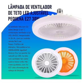 Lâmpada Ventiladora de Teto: Controle Remoto e E27 30W Mini ventilador de teto ajustável com luz de led.