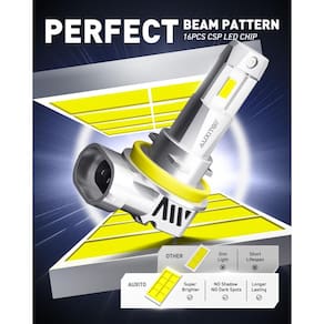 AUXITO Lâmpadas H8 H9 H11, substituição direta H11, farol de neblina 30000lm, tamanho mini, pacote com 2 - AUXITO As luzes de neblina h11 estão equipadas com chipsets de alto brilho, 800 vezes mais brilhantes do que as lâmpadas de estoque, oferecem visibilidade mais clara, tornam sua condução mais segura à noite. - Design real de lâmpadas de halogêneo 1:1, se encaixam perfeitamente na carcaça da lâmpada e no plugue de fábrica, quase sem problemas correspondentes às operações padrão da base, você pode concluir facilmente a instalação em 5 minutos. - Nossa lâmpada está equipada com um ventilador de resfriamento de 12.000 RPM e um único rodapé de cobre, o que pode reduzir significativamente sua temperatura operacional e maximizar sua vida útil. - Possui fonte de alimentação embutida, base pequena, sem recursos de polaridade, pode ser instalado independentemente sem nenhuma ferramenta, turly plug and play. - O driver IC interno mais recente resolve o problema de oscilação e aviso de erro, que pode ser bem compatível com 99% de veículos com lâmpadas h11.