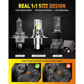 - ?Instalação rápida em 3 minutos? Com um design 1:1 para lâmpadas de halogêneo, as lâmpadas H4 se encaixam perfeitamente em sua caixa e soquete de fábrica sem modificações. Com um design não polarizado e sem bases grandes ou drivers adicionais, a instalação é realmente plug-and-play.