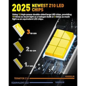 IMPORTANTE: Se for um produto elétrico, ele pode ser compatível com uma tomada de 110 volts. Se utilizado fora dos Estados Unidos, pode ser necessário um conversor de voltagem para garantir a operação adequada. Verifique se o produto que você está comprando é elétrico antes de considerar essas informações. Lâmpadas Termitor 2025 mais brilhantes 9005, farol de neblina 9005 ultrabrilhante de 40000 LM, 6500 K com ventilador de resfriamento, faróis de neblina HB3 de design 1:1 para ATV/UTV de esportes motorizados, Plug-N-Play, pacote com 2 -?Foco de luz ideal?As lâmpadas de iluminação Termitor 9005/HB3 atualizadas fornecem um foco de luz excepcional, minimizando efetivamente o brilho dos veículos que se aproximam. Com um design ultrafino de 0,03 polegadas que aproxima os chips, essas lâmpadas fornecem um feixe concentrado sem pontos escuros ou sombras, garantindo uma visão mais ampla e clara para uma condução noturna mais segura. -?10 vezes mais brilhante que o halogênio?Experimente um aumento significativo de brilho com as lâmpadas Termitor 9005/HB3, oferecendo 1000% mais iluminação. Gerando 45.000 lúmens por conjunto a 6500K, essas lâmpadas de alto desempenho superam em muito as opções de halogênio padrão, permitindo que você veja mais longe e reaja mais rapidamente na estrada. -?True?True 1:1 Mini Design?As lâmpadas Termitor 9005/HB3 apresentam um design 1:1 simplificado que combina perfeitamente com as lâmpadas halógenas. Rigorosamente testadas quanto ao ajuste e durabilidade, elas se integram facilmente ao compartimento da lâmpada com uma estrutura compacta multifuncional e conectores não plásticos. Mini Design 1:1?As lâmpadas Termitor HB3 apresentam um design 1:1 simplificado que combina perfeitamente com as lâmpadas halógenas. Testados rigorosamente quanto ao ajuste e durabilidade, eles se integram facilmente ao compartimento da lâmpada com uma estrutura multifuncional compacta e conectores não plásticos. -?Mais de 70.000 horas de vida útil?Construídas com materiais premium, como alumínio para aviação e um rodapé de cobre substancial, essas lâmpadas 9005/HB3 fornecem mais de 70.000 horas de iluminação consistente e estável. Um ventilador de resfriamento de alta velocidade dissipa efetivamente o calor, reduzindo a necessidade de substituições frequentes.