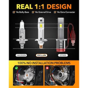 IMPORTANTE: Se for um produto elétrico, ele pode ser compatível com uma tomada de 110 volts. Se utilizado fora dos Estados Unidos, pode ser necessário um conversor de voltagem para garantir a operação adequada. Verifique se o produto que você está comprando é elétrico antes de considerar essas informações. Lâmpadas OXILAM Q36 H1/H1LL 22000LM mais brilhantes, lâmpadas de neblina H1 tamanho mini 1:1, lâmpada branca fria ultrabrilhante de 6500K sem fio, IP68, pacote com 2 -?600% mais brilhante?A lâmpada de neblina OXILAM Q36 H1/H1ll contém 12 chips de alta qualidade, oferece uma impressionante saída de iluminação de alta eficiência de 22.000 LM, 600% mais brilhante que o halogênio, garantindo maior visibilidade e segurança em todas as condições de condução. -?5 minutos de instalação?Com seu tamanho miniatura 1:1 e design sem fio, as lâmpadas Q36 H1 não requerem ferramentas ou modificações especiais e podem ser instaladas em apenas 5 minutos, facilitando a conclusão da instalação por cada proprietário de carro. -?Iluminação de 360 graus?As lâmpadas H1 apresentam tecnologia de padrão de feixe 1:1 e uma placa de cobre ultrafina de 0,03 polegadas que fornece cobertura de iluminação de 360 graus para uma iluminação ideal. Ilumina a estrada à frente sem manchas escuras, melhorando sua experiência geral de direção. -?Mais de 6.000 horas de vida útil?As lâmpadas Q36 H1 apresentam um corpo totalmente em alumínio com um tubo duplo de cobre embutido. A adição da impermeabilização IP67 permite o uso confiável em uma variedade de ambientes sem sacrificar o brilho ou a clareza e garante até 6.0000 horas de vida útil, reduzindo a necessidade de substituições frequentes. -?99% compatível com veículos?A lâmpada Q36 H1 possui um driver IC inteligente integrado projetado para evitar códigos de erro, problemas de oscilação ou interferência de rádio, garantindo compatibilidade perfeita com o sistema elétrico do seu veículo