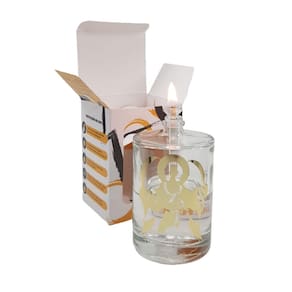 Especificações: 5,5 cm de diâmetro. Material Lamparina: Vidro de aproximadamente uma espessura de 3mm. Pintura do Anjo em dourado similar ao folhado a ouro. Pavio: Vidro eterno Sem Cheiro Marca: Velas Bistrot Classificação de risco do óleo não incluso : 1 Não inflamável Consumo de fluido: De 40 à 85ml a cada 10 horas, dependendo da regulagem da altura da chama.