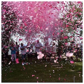 Lança Confete Chá Revelação Rosa 30cm - Modelo: Chá Revelação Rosa