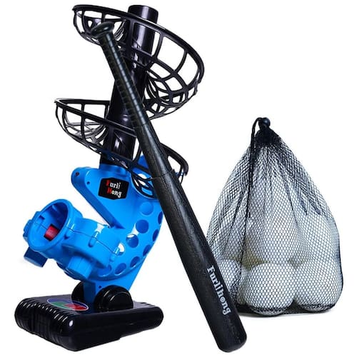 Este produto é uma máquina de arremesso de bola de treinamento que pode ser usada para aprimorar as habilidades de jogadores de diferentes idades e níveis. A máquina é capaz de lançar bolas a uma velocidade de 32 km/h usando bolas de treinamento de plástico Furlihong sem ferrão, pesando cerca de 0,03 gramas, projetadas especificamente para o uso com essa máquina. Além disso, a máquina é extensível, vindo com uma dúzia de bolas de treinamento sem ferrão de 22 cm, e bolas de treinamento adicionais podem ser adquiridas na loja da marca Amazon.